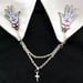 - Embellished with a small 5/8" silver metal cross.